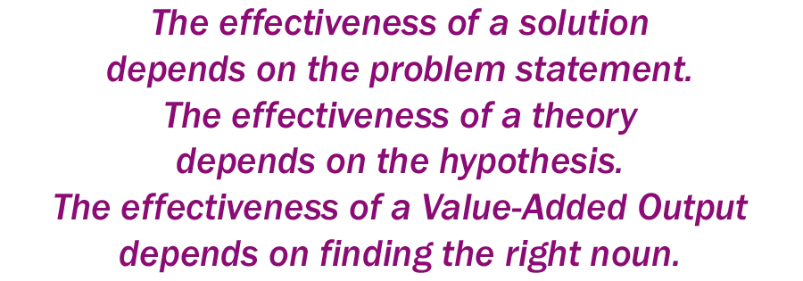 A Value-Added Output includes a countable noun, clarifying criteria, and a measurement period, creating a clear metric for how well you influence Relevant Business Results.