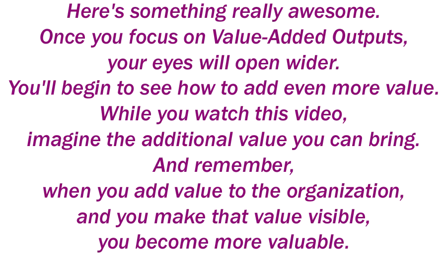 Supersizing means increasing the challenge and impact of your Value-Added Outputs by going beyond routine tasks to create measurable, strategic contributions.